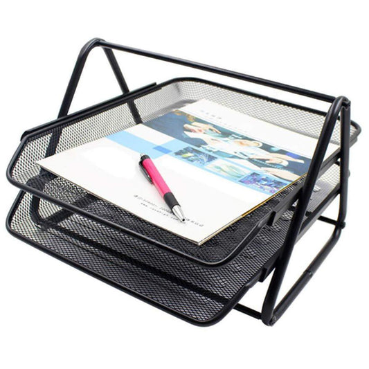 2-Tier Heavy Duty Metal Desktop Letter Tray File Organizer - Black, Desk Paper, Magazine & Document Sorter