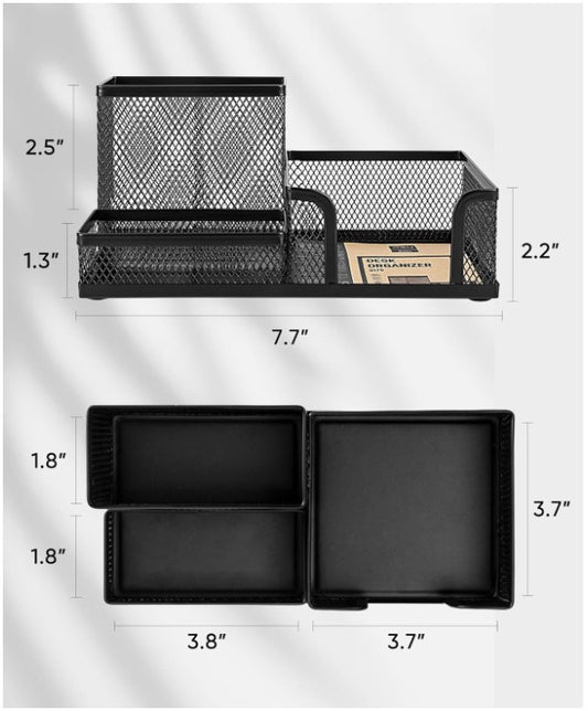 9-Compartment Desk Organizer with Drawer – Mesh Metal Steel Pen Stand/Holder for Stationery – Black