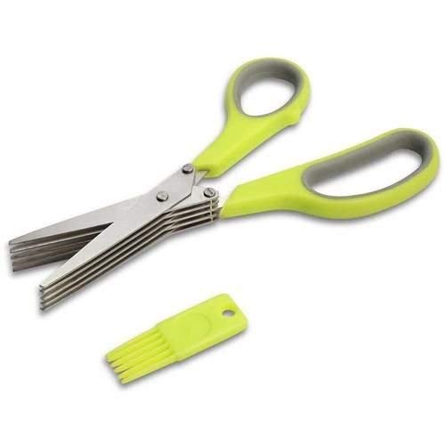 Shredding Scissors with Cleaning Combo - 5 Blade Multi-Function Stainless Steel Herb and Vegetable Scissors