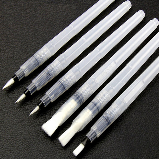 Set of 6 Refillable Watercolor Brush Pens – Soft Ink Markers with 3 Pointed and 3 Flat Tips for Drawing, Calligraphy, and Painting