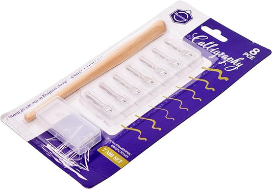 8-Piece Calligraphy Dip Pen Set – 7 Nibs, Wooden Handle