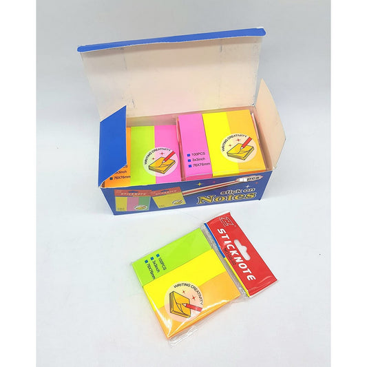 Pack of 100 - Multicolor Sticky Note Pad 3 X 3 76 X 76 multi colour Sticky Notes Book Mark Memo Pad Paper